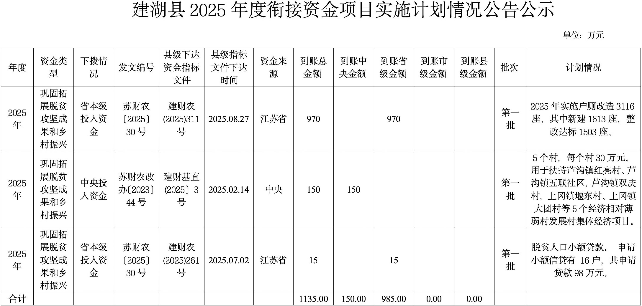 建湖县2025年度衔接资金项目实施计划情况公告公示